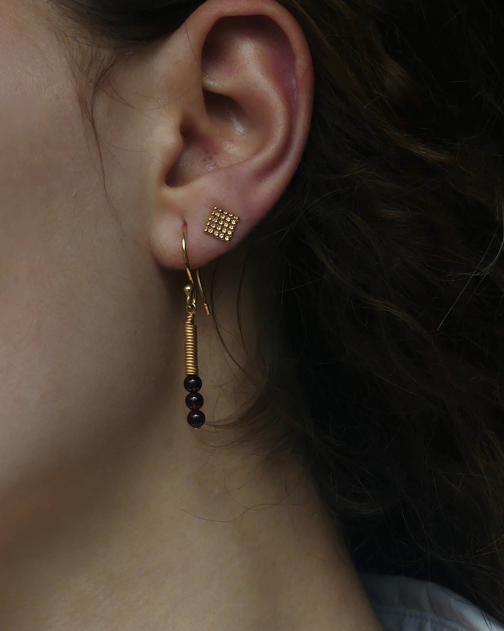 Square earrings with a texture created using the ancient granulation technique. A small piece of jewelry, yet steeped in history, perfect for adding a subtle and sophisticated touch to your everyday look.