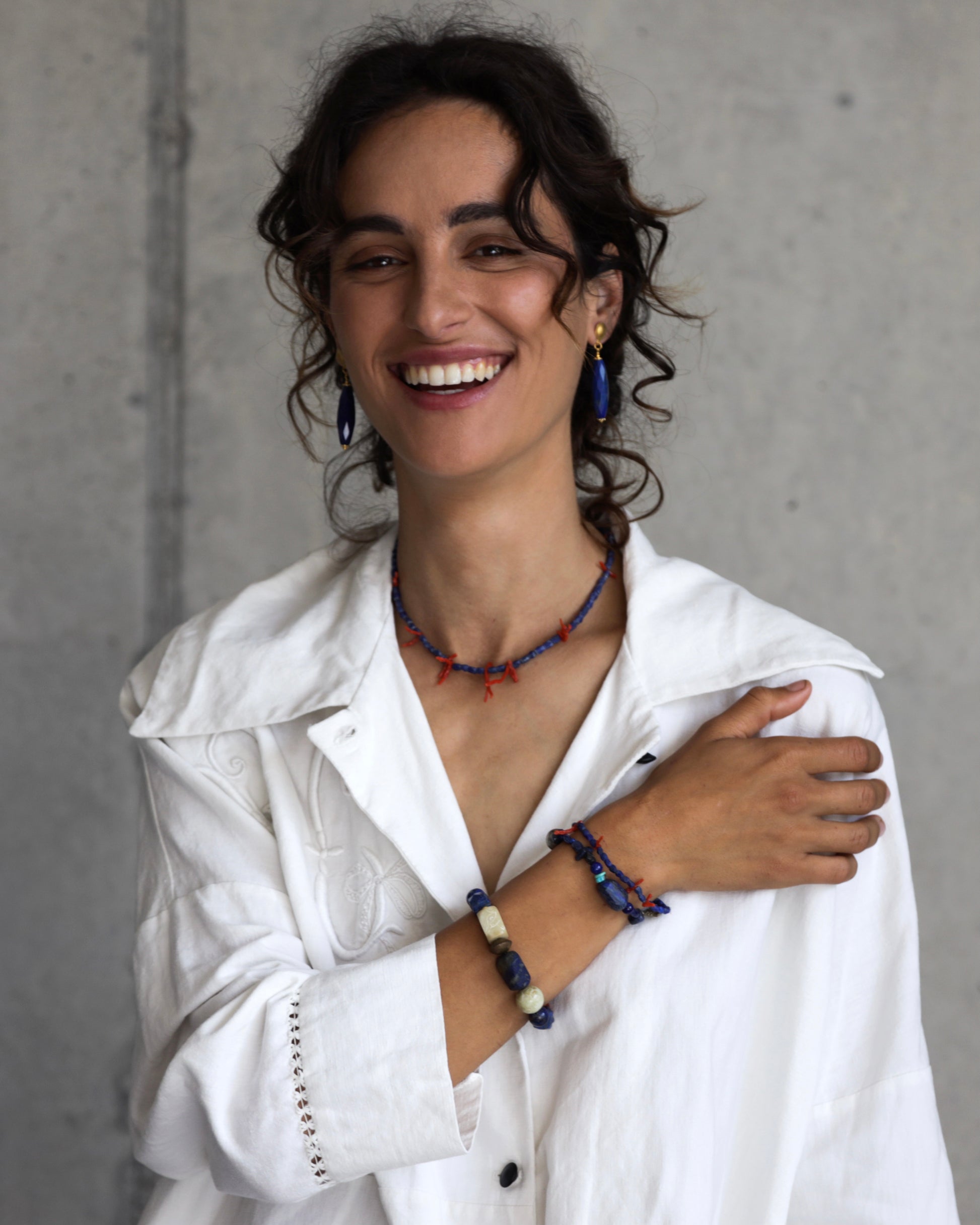 Hand-assembled in Mallorca with materials from Afghanistan, Naples, Menorca, and the Mediterranean.