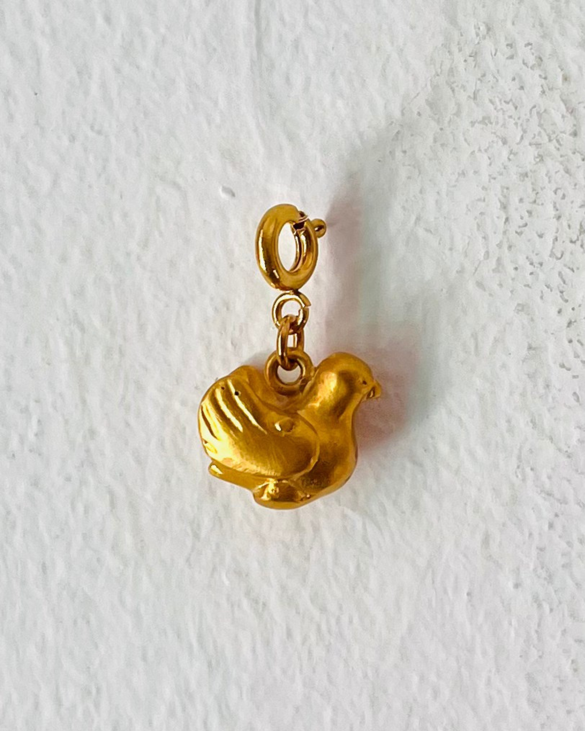 El charm amuleto Ocell, una delicada figura de pájaro que simboliza libertad y ligereza.