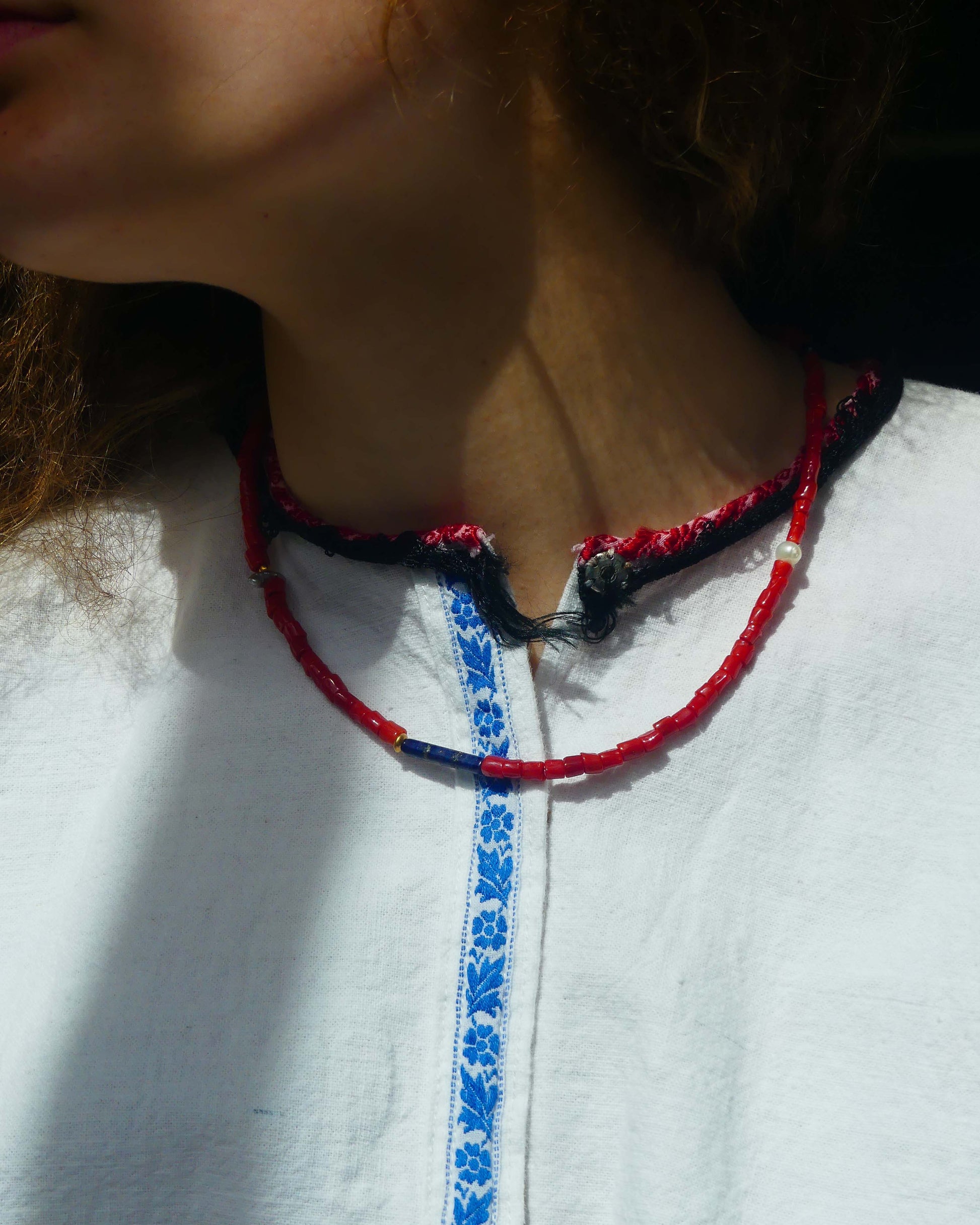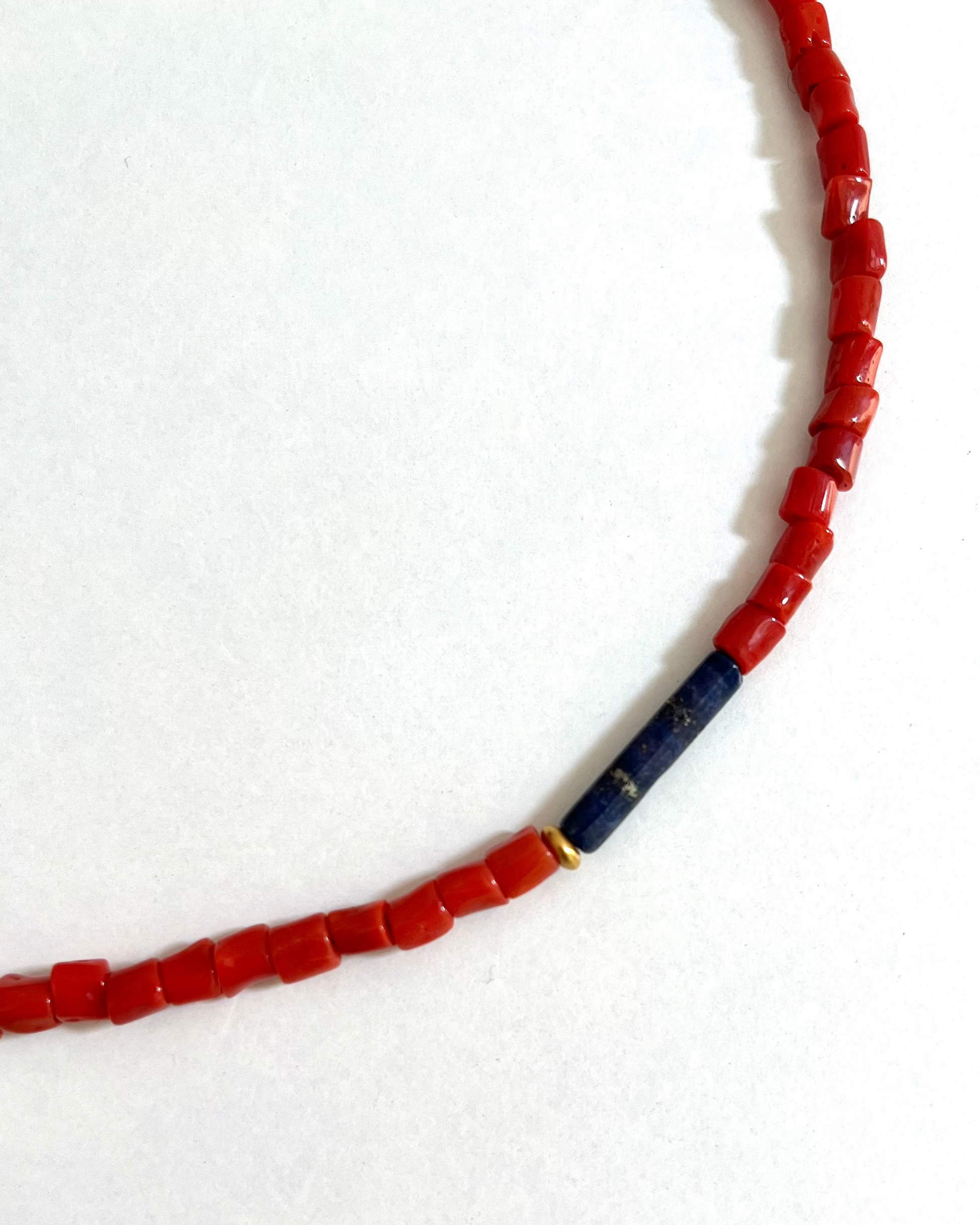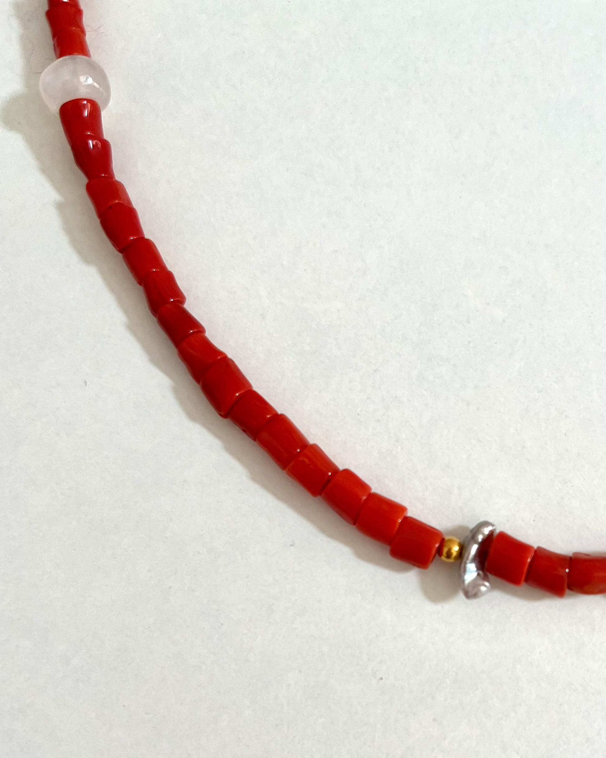 Este collar con tira de coral tronco auténtico mediterráneo junto con unas pocos detalles que lo hacen único, sencillo y un recuerdo nostálgico a la New Age. Pertenece a series limitadas de El Bazar de Pepa