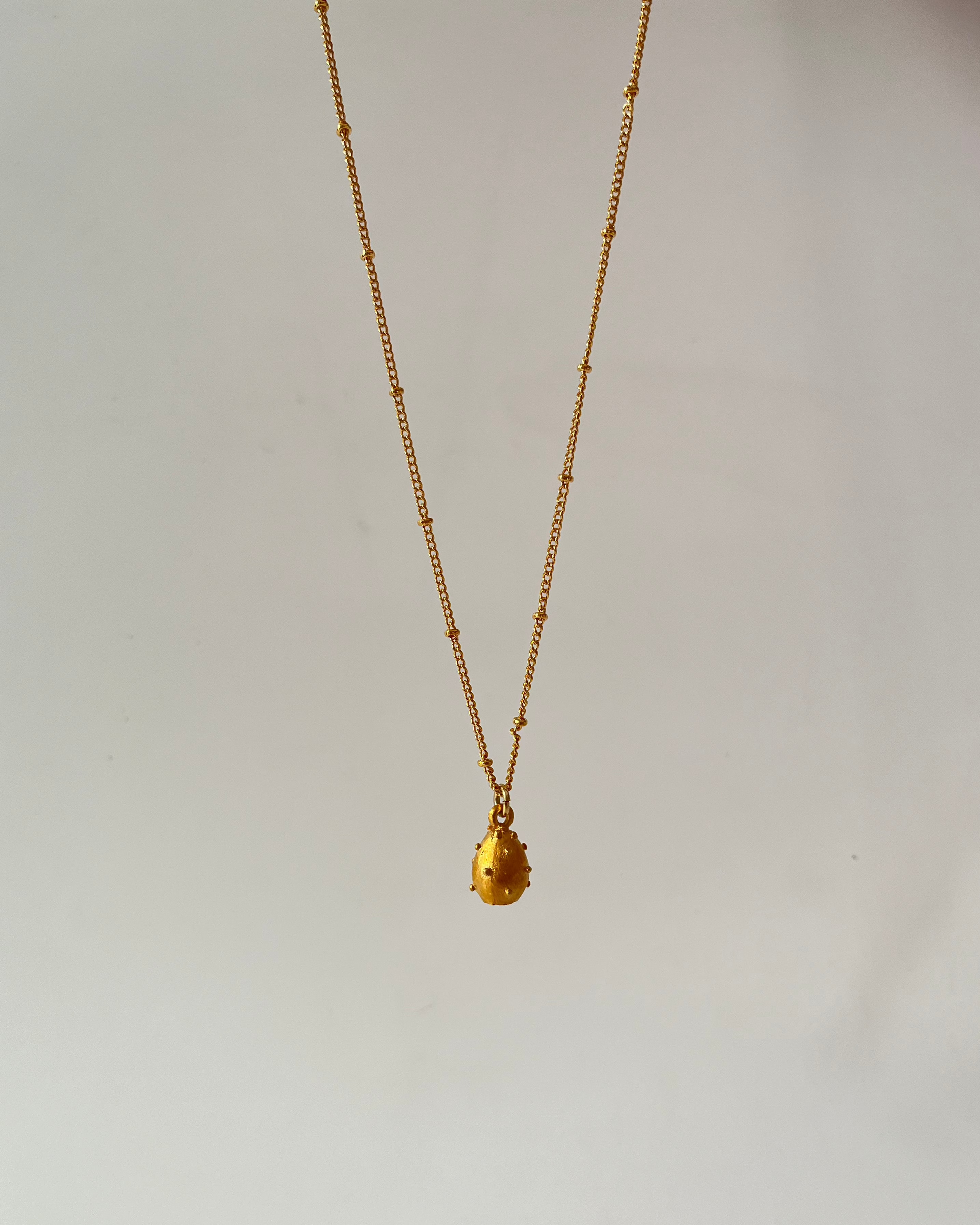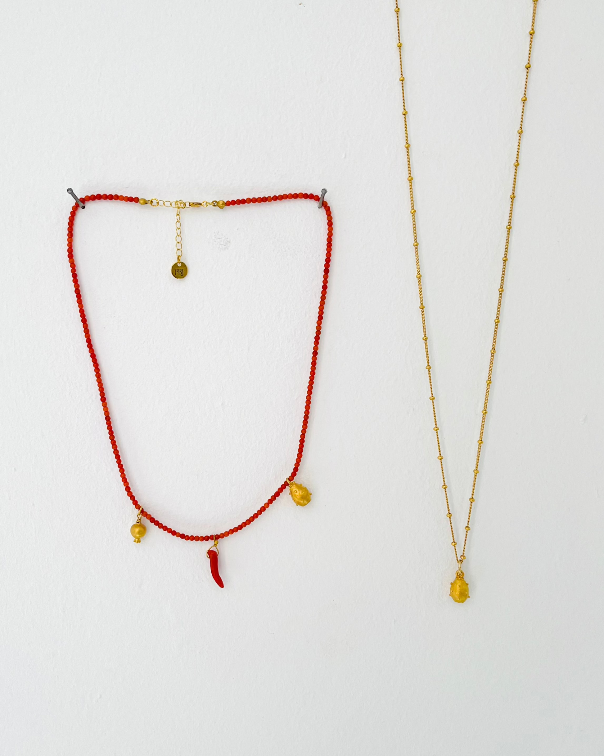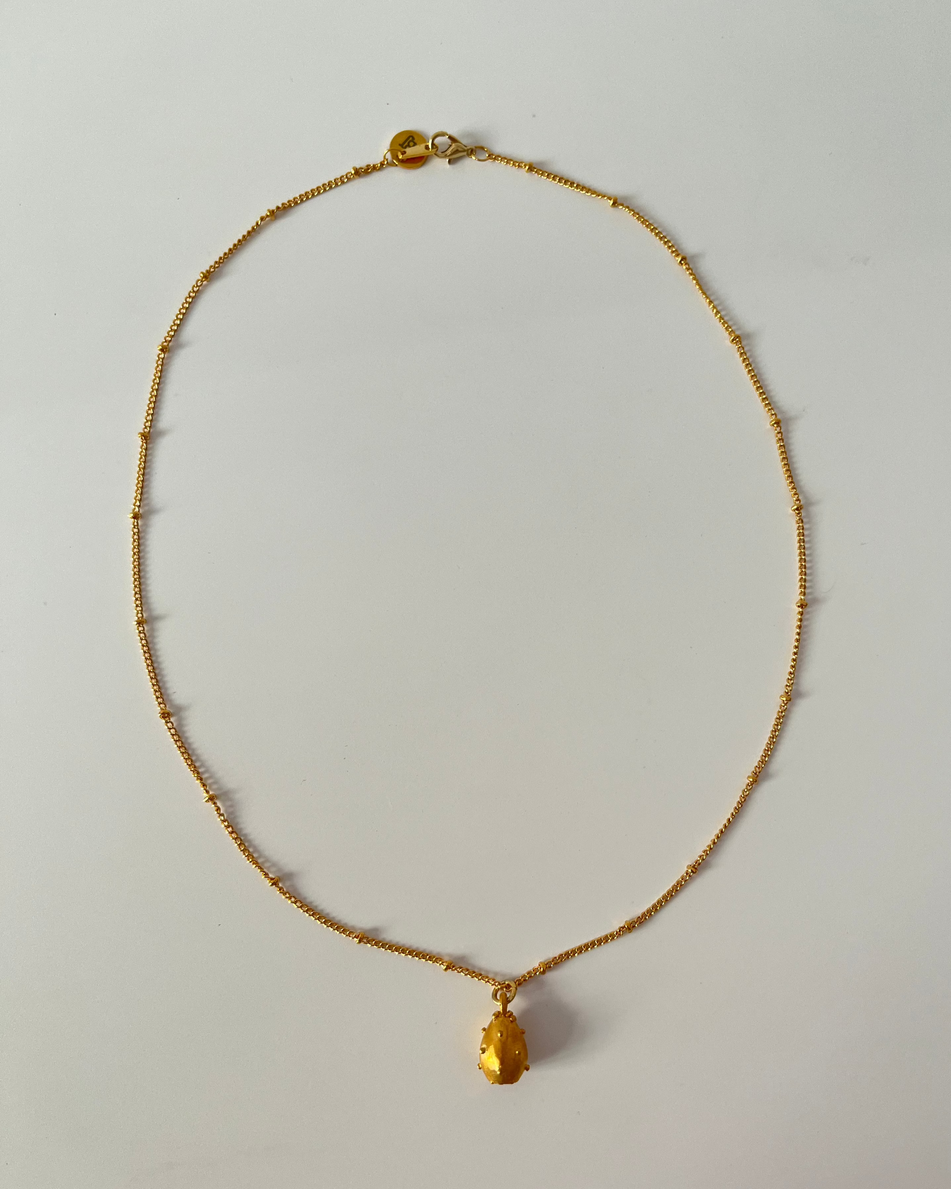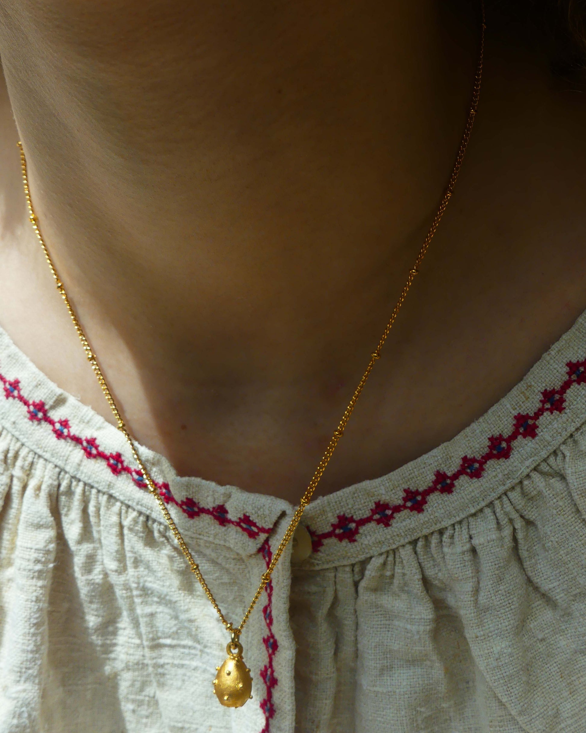 Collar con cadena dorada y amuleto en forma de higo chumbo, inspirado en los paisajes del Mediterráneo.