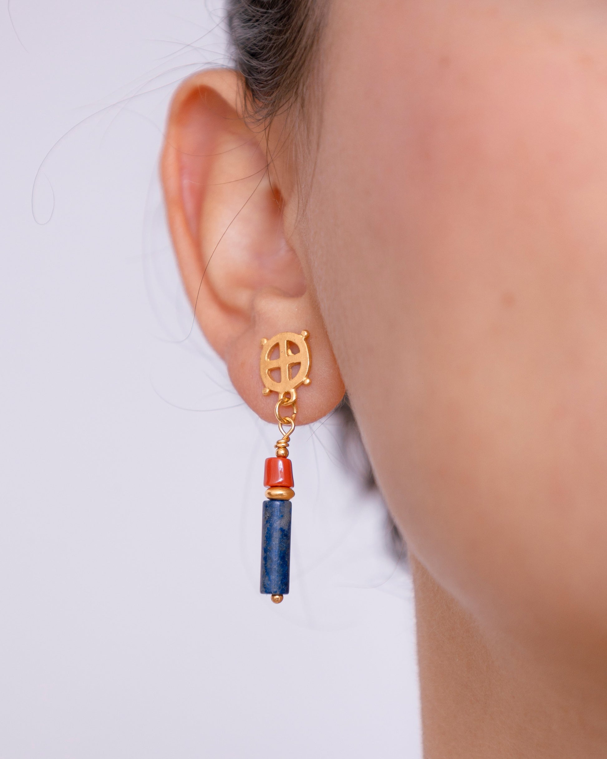 Informal y asimétrico hemos añadido el logo de la marca considerado un charm único. Respira el aire salino de la costa occidental Mediterránea. Combina con los pendientes Gracia y Logo.